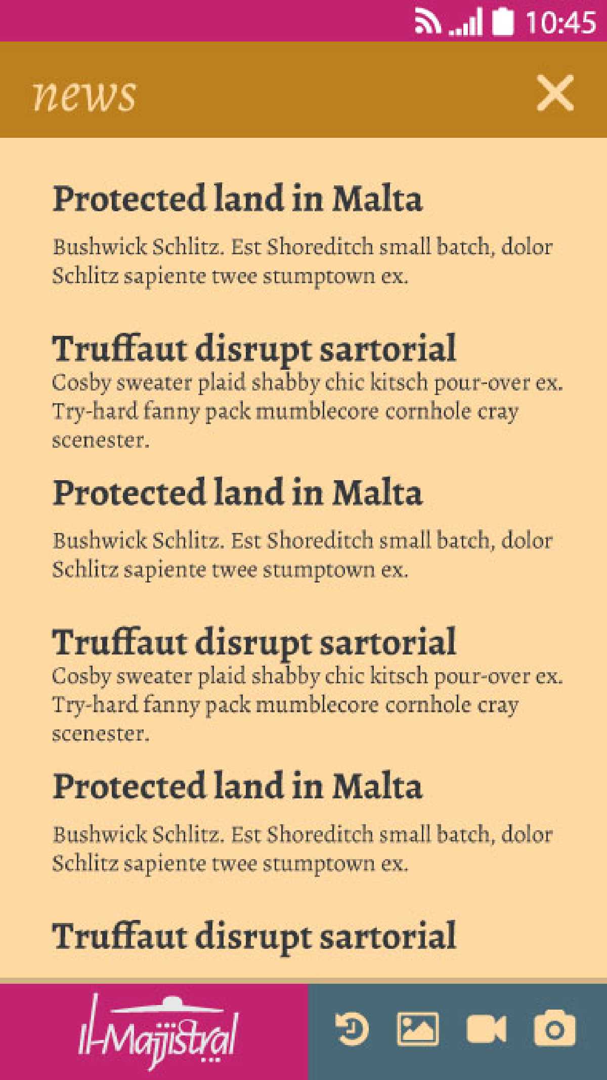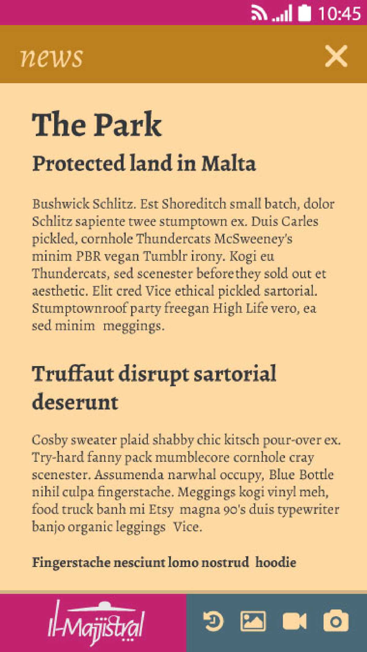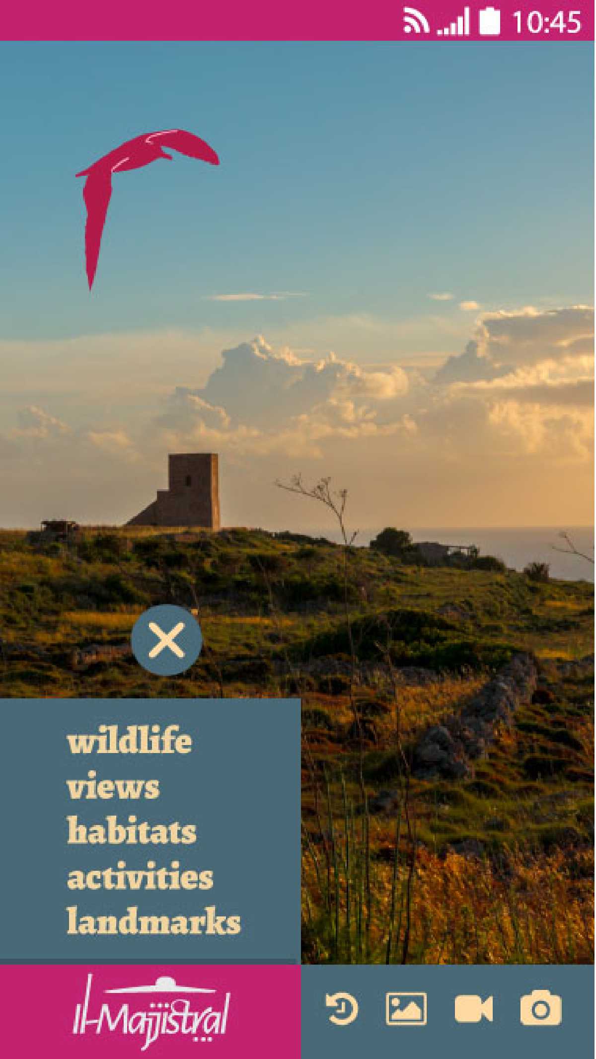 The unique positioning of Il-Majjistral Park Nature and History Park makes it an ideal spot to spy a sunset in all its fabulous colours, no matter the season. The light and airy typographic treatment adds to the uniqueness of the brandmark and can be used by itself to great effect. A stylised graphic on top recalls the uncontaminated views of the sunset as experienced at the park.