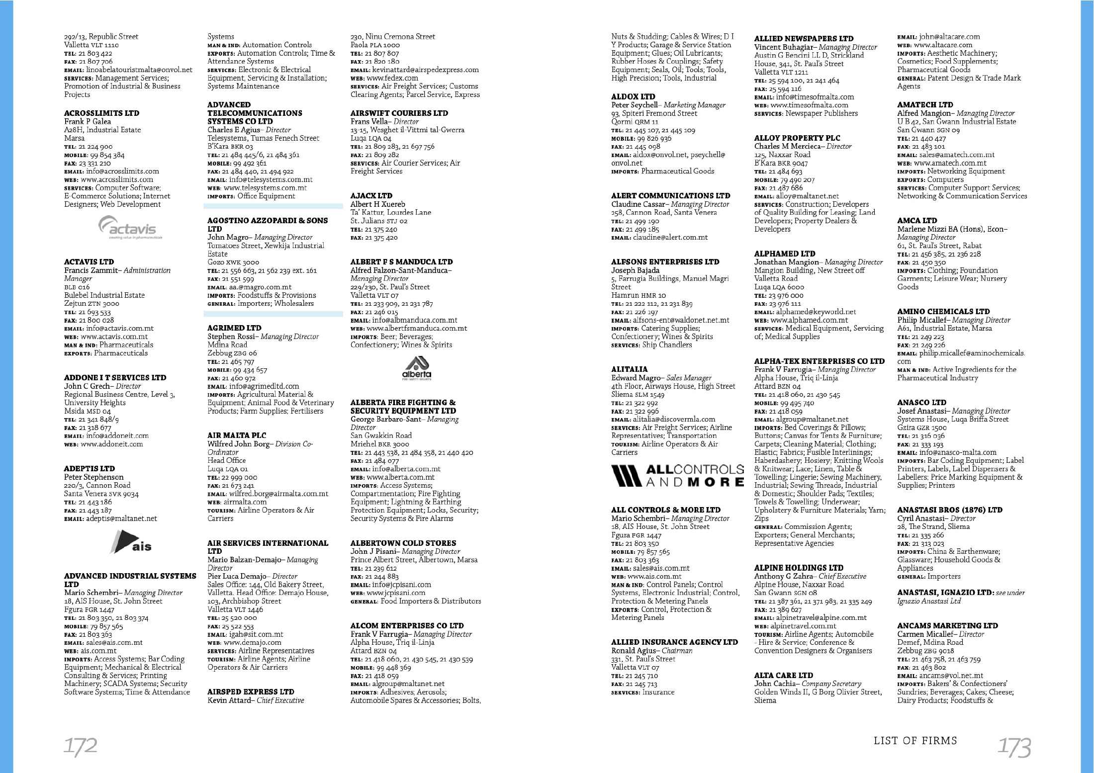 Top: Sample spreads from the Malta Trade Directory. The client’s Excel files were translated automatically into proper typesetting. The upfront design preparation was worth it as the client had the ability to change their data and start the design process early. This reduced design errors to zero as each update was mostly automated.